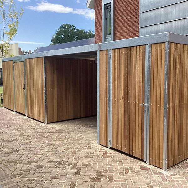 Het aantal overkappingen dat we dit jaar hebben geplaatst speciaal voor scootmobiels, is sterk gestegen. Elke scootmobiel overkapping kan op maat worden gemaakt. Basis is de populaire FalcoLok overkapping. Aan de hand van de wensen van de klant wordt er een berging op maat gemaakt. Hoeveel scootmobiels moeten er veilig en droog worden gestald? Is er ruimte voor 1 grote opstelling of dienen er meerdere opstellingen gemaakt te worden? Het is ook mogelijk om te kiezen voor een FalcoLok 500 of FalcoLok 600 met een extra brede deur. Deze overkappingen zijn uitermate geschikt als berging voor scootmobiels